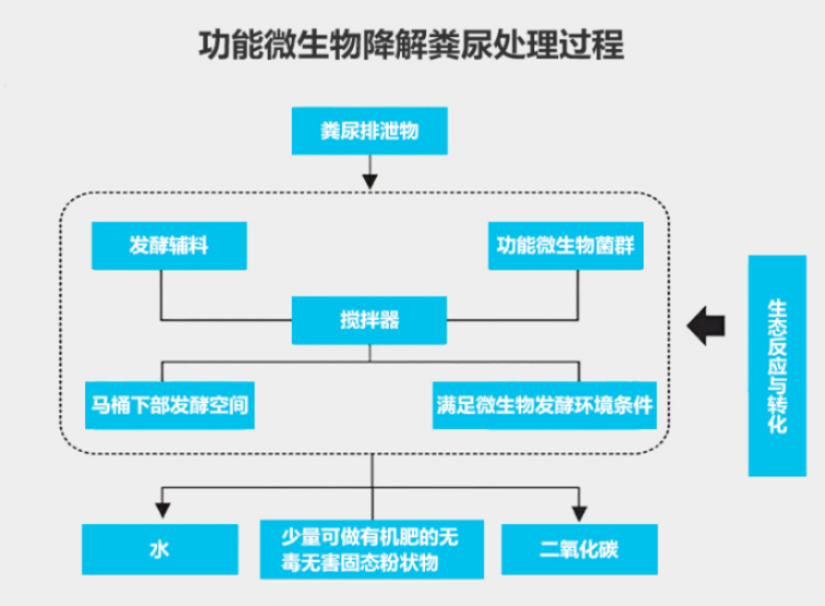 2、微生物菌智能坐便器的核心构成生物微循环系统,通过微生物菌的好氧特性可将粪尿降解为水和二氧化碳。