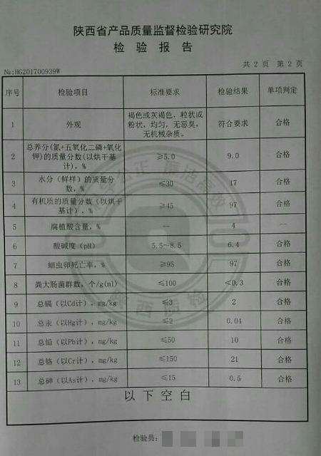 陕西渭南的刘总是一家有机肥厂的老总,今年年初致电金宝贝咨询锯末发酵有机肥的有关情况,他以前用过许多家发酵剂产品,发酵粪便、污泥、枯枝落叶还可以,但是对于锯末发酵就很难对付了。在技术人员讲解以后当时买了一件货回去做试验了,期间多次和我金宝贝的技术人员沟通情况,在我公司技术多次讲解和指导下,第一批出厂的有机肥质量还不错,刘总当即安排人员取样送到陕西省质检部门检测,报告出来后反馈这项指标都很好,刘总非常高兴。